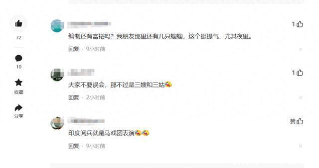 最近关于印度阅兵采用“动物方队”的新闻引发了网友们的广泛讨论,小编也关注了一下这个事情,无意中看到某位大V账号下关于这件事情的网友评论,在看的过程中也顺便看了一下其他新闻的相关评论。 让小编没想到的是,关于印度阅兵采用“动物方队”,在小编看到的评论中,竟然引来了网友100%的嘲笑,没错!就是100%。小编特意了解了这件事情的全部经过,感觉似乎也没那么感觉好笑,更有一种我们的笑点真低的感觉。